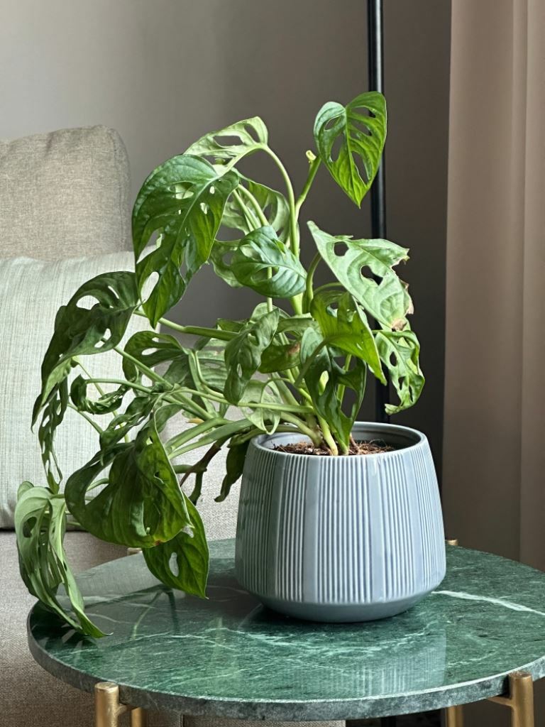 - Brak otworu odpływowego → osłonka jest szczelna, dzięki czemu zabezpiecza meble przed wilgocią. Pamiętaj, aby wstawiać do niej roślinę w doniczce z otworami, a nadmiar wody po podlaniu wylewać.