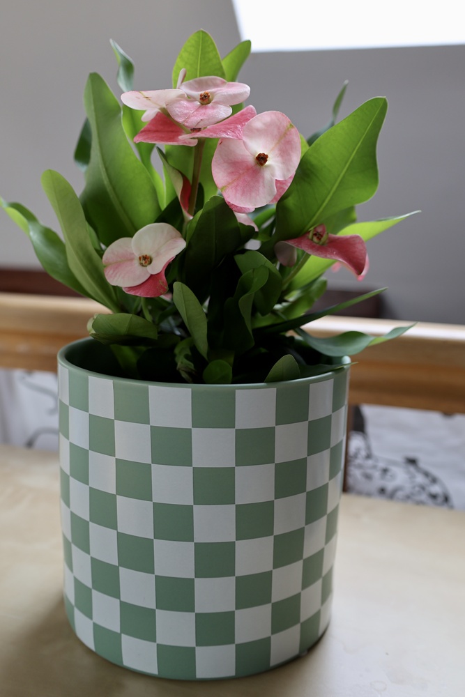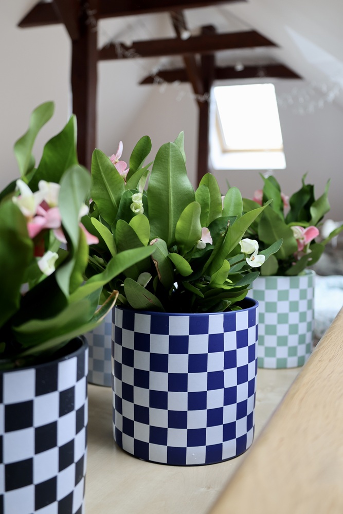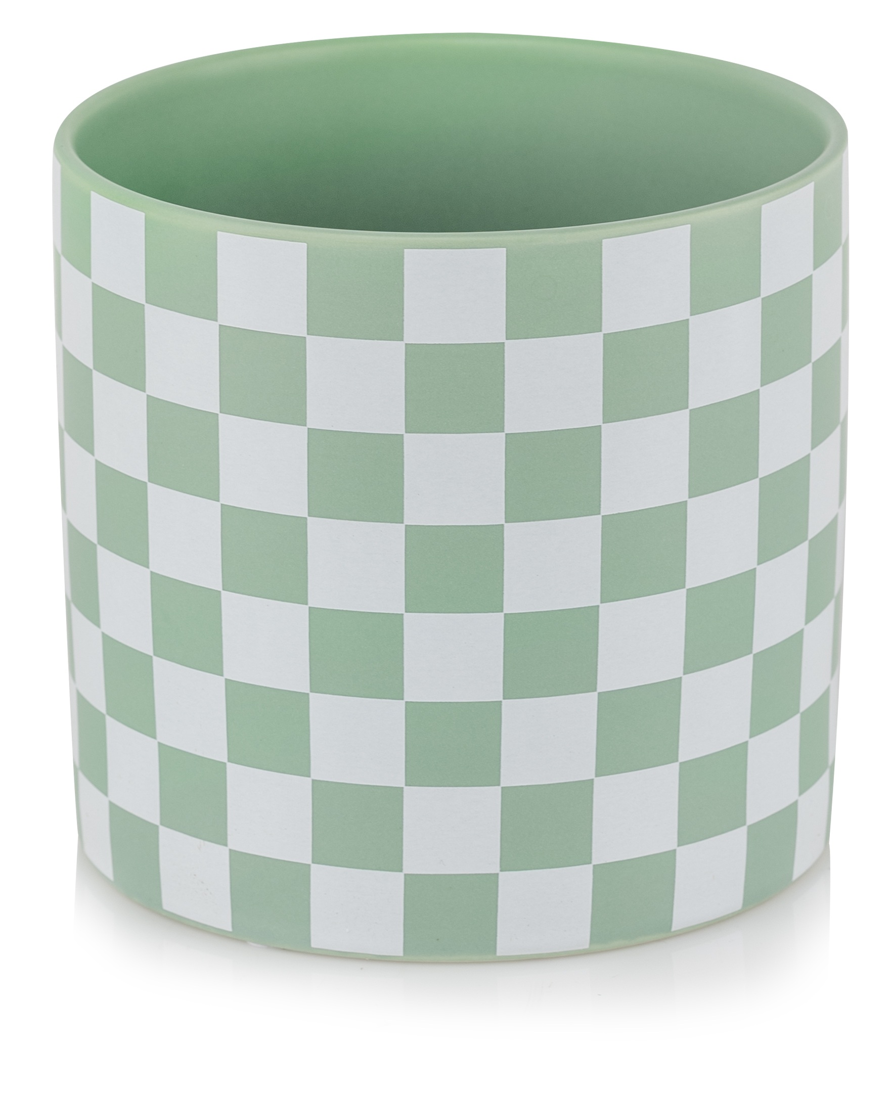 Ceramiczna osłonka doniczkowa o prostej, nowoczesnej formie walca, zwracająca uwagę efektowną biało-zieloną kratką. Jej minimalistyczny kształt i kontrastujące kolory kratki nadają całości elegancji i tworzą dynamiczny efekt wizualny. Gładka powierzchnia i harmonijne proporcje sprawiają, że doniczka doskonale wpisuje się w różnorodne nowoczesne wnętrza od skandynawskich aranżacji po bardziej odważne designerskie przestrzenie. Doniczka o oryginalnym, dekoracyjnym, ożywiającym wnętrze charakterze.