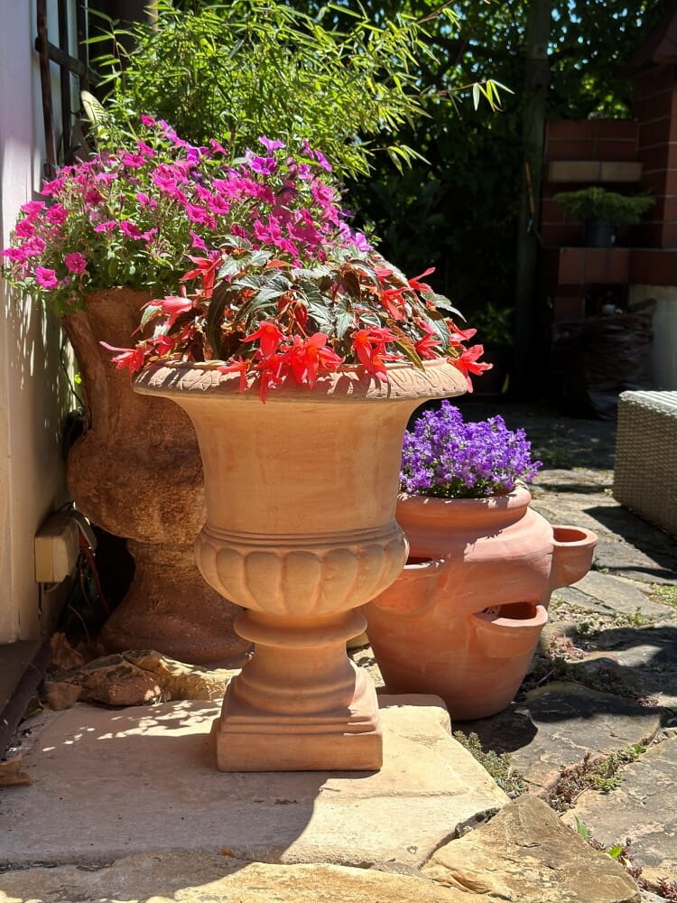 - Matowa terakota → Pomarańczowy, ziemisty kolor doskonale komponuje się z zielenią roślin i naturalnymi materiałami w ogrodzie lub na tarasie.
