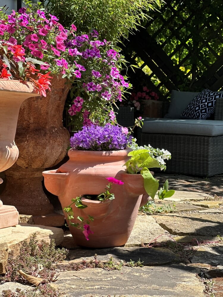 - Boczne otwory („kieszenie”) → Pozwalają na wsadzenie roślin do bocznych wnęk, co ułatwia tworzenie kompozycji z kilkoma gatunkami w jednej donicy, idealnie do ziół.