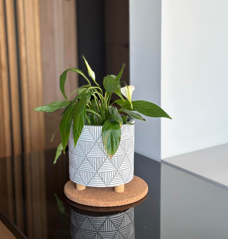 To ceramiczna osłonka w kształcie cylindra, która unosi się na eleganckich, drewnianych nóżkach. Jej minimalistyczny design i naturalne materiały sprawiają, że idealnie podkreśla urodę roślin, nie rywalizując z nimi o uwagę. Znajdzie swoje miejsce w nowoczesnych i boho aranżacjach, gdzie liczy się detal i autentyczność.