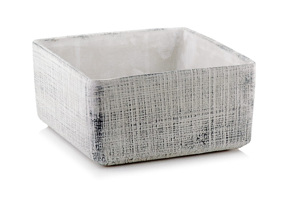 To niska, kwadratowa osłonka ceramiczna, która dzięki matowemu, szaremu wykończeniu i celowym nierównościom na powierzchni, doskonale imituje surowy beton. Jej minimalistyczny, rustykalny charakter świetnie podkreśli zieleń roślin, nie dominując ich swoją formą. To naturalny wybór do wnętrz w stylu boho lub nowoczesnych aranżacji, gdzie liczy się autentyczność i prostota.