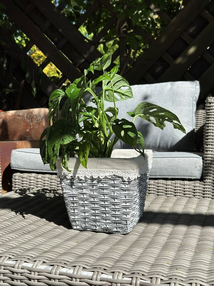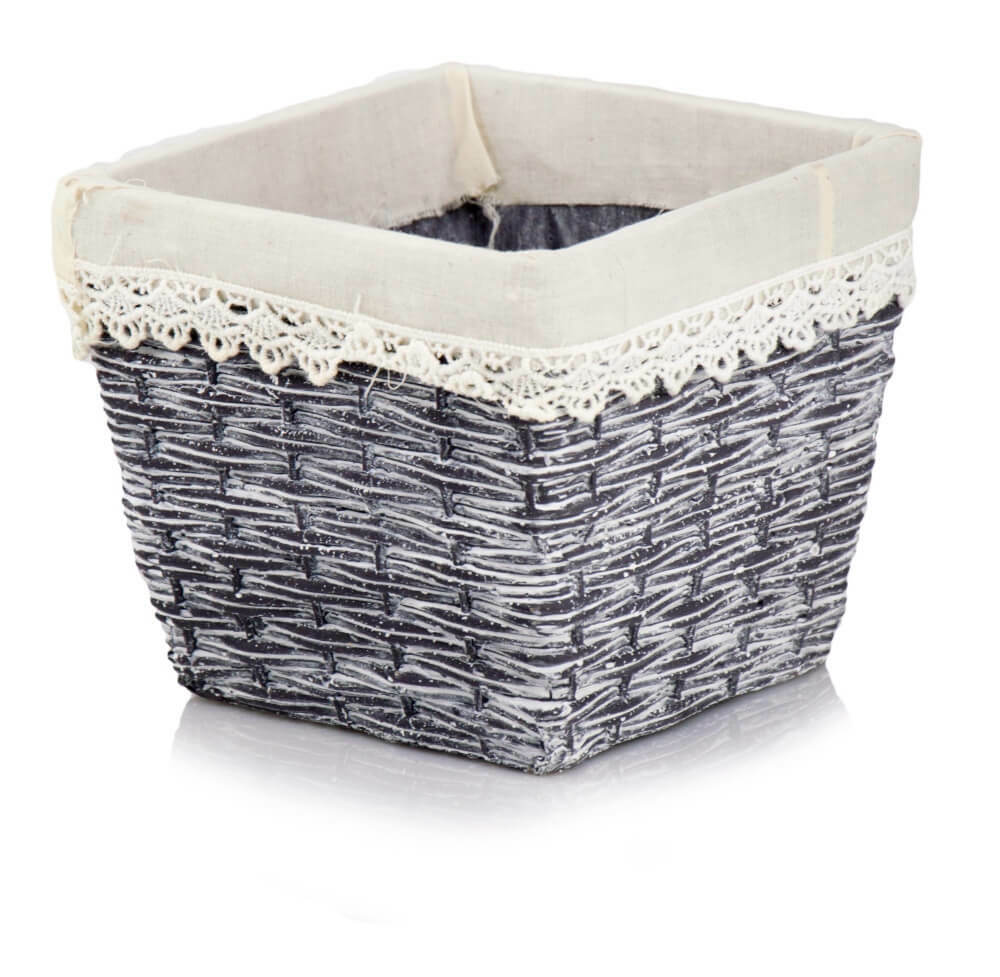 Dzięki swojemu uroczemu designowi, który naśladuje plecionkę, donica wprowadza do wnętrza przytulny klimat. Subtelny motyw koronki widoczny na górnej krawędzi jest delikatnym, dekoracyjnym akcentem. Model ten doskonale sprawdzi się w roli osłonki, ale jego estetyka pozwala również na wykorzystanie go jako pojemnika na owoce, suszone kwiaty czy inne drobiazgi, które chcesz mieć pod ręką. Pamiętaj, że donica nie jest mrozoodporna i jest przeznaczona wyłącznie do użytku wewnętrznego.