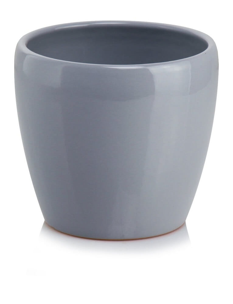 Okrągła donica wykonana z ceramiki pokrytej szkliwem. Jej szary, błyszczący wygląd sprawdzi się w nowoczesnych i minimalistycznych aranżacjach wnętrz. To model, który docenisz za subtelną elegancję i prostotę formy.