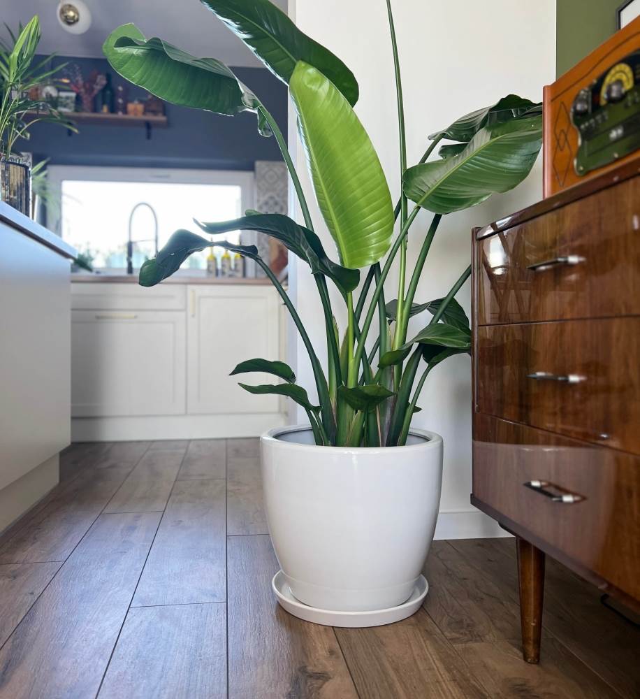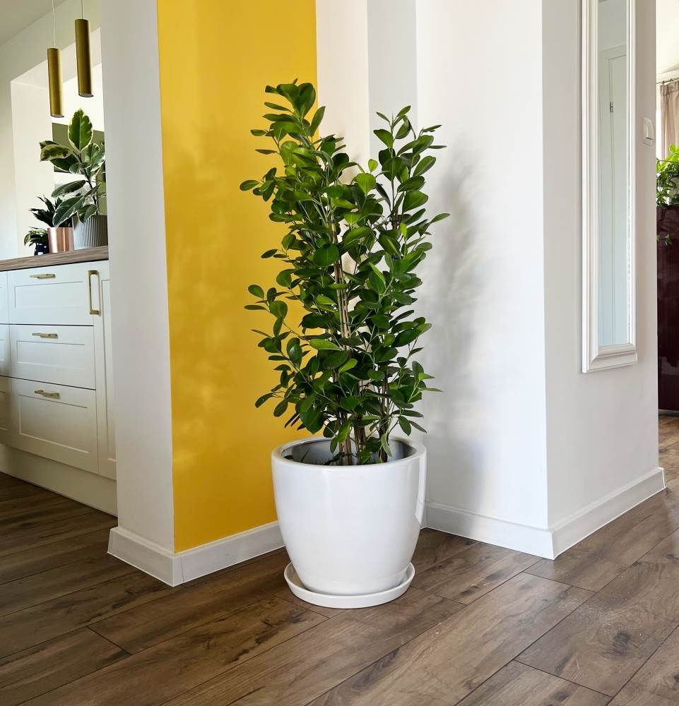• Biały, błyszczący kolor → Jasna barwa rozświetla przestrzeń i doskonale komponuje się z zielenią roślin.