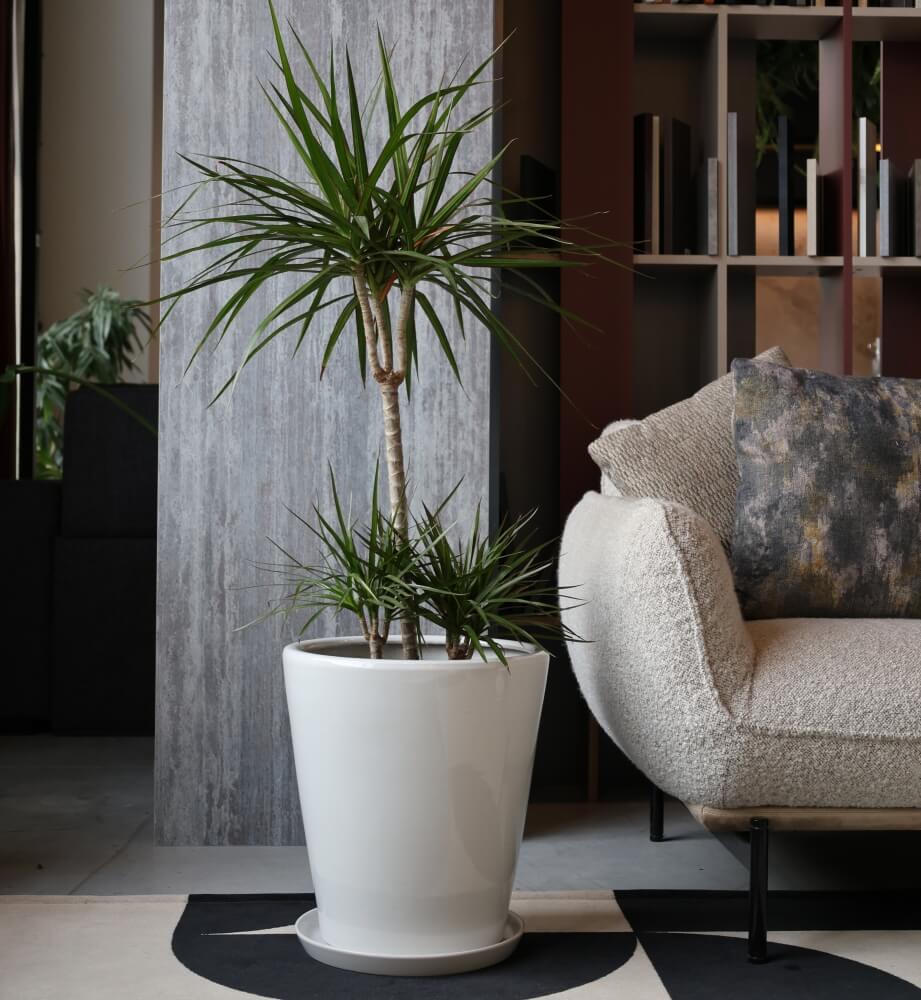 - Charakterystyczny, wysoki kształt zwężający się ku dołowi → stworzony z myślą o roślinach z głębokim systemem korzeniowym, takich jak palmy pokojowe.