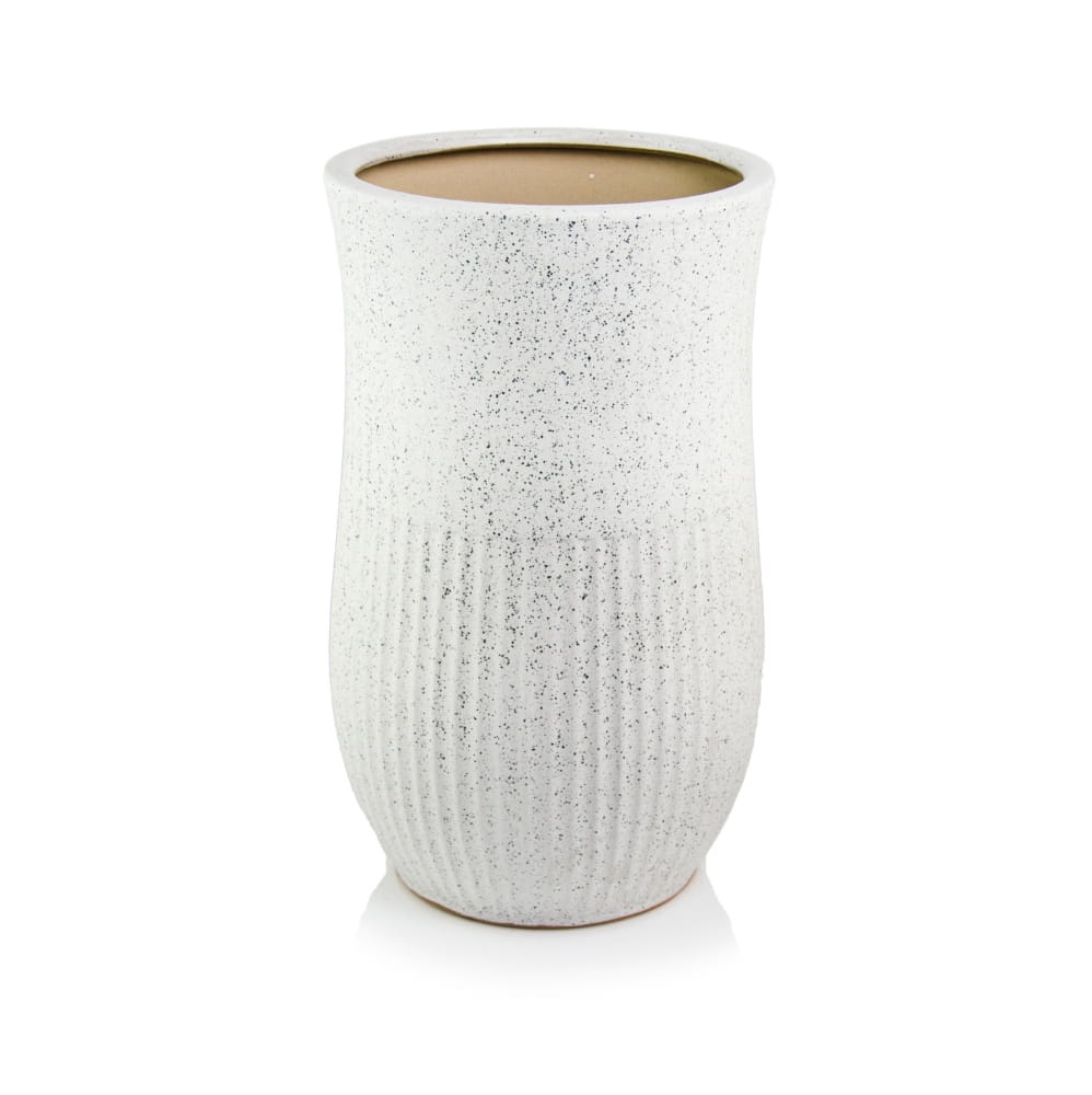 Donica Mood 01.515.50 to wysoka, ceramiczna osłonka o kształcie tulipana, wykonana z trwałej ceramiki szkliwionej. Jej matowe, kremowe wykończenie z wzorem terrazzo dodaje elegancji i unikalnego charakteru, pasując do różnych stylów wnętrz. Dostępna w komplecie dwóch sztuk, pozwala tworzyć spójne i harmonijne kompozycje roślinne.