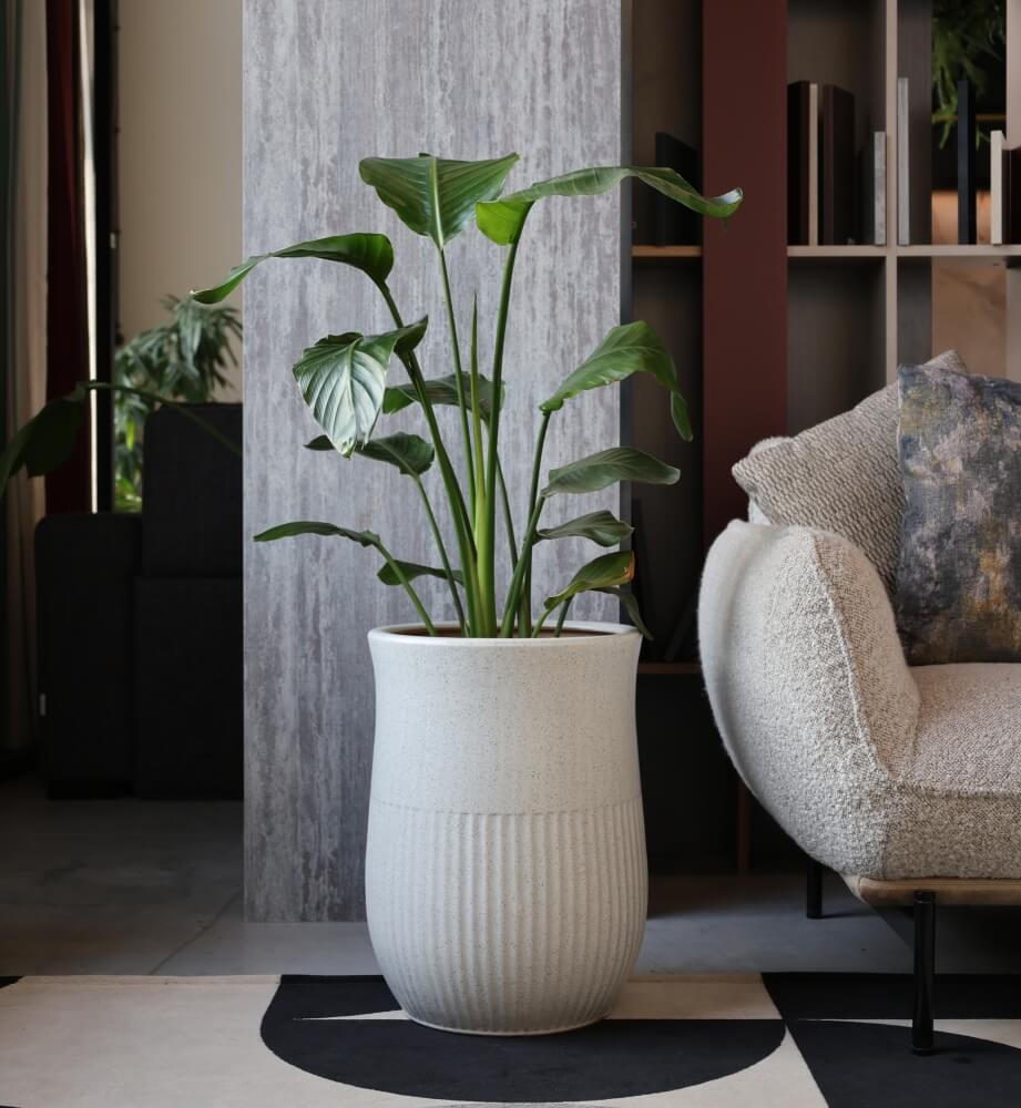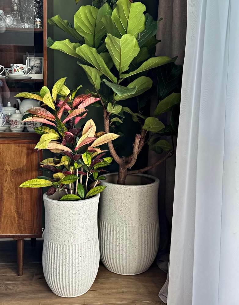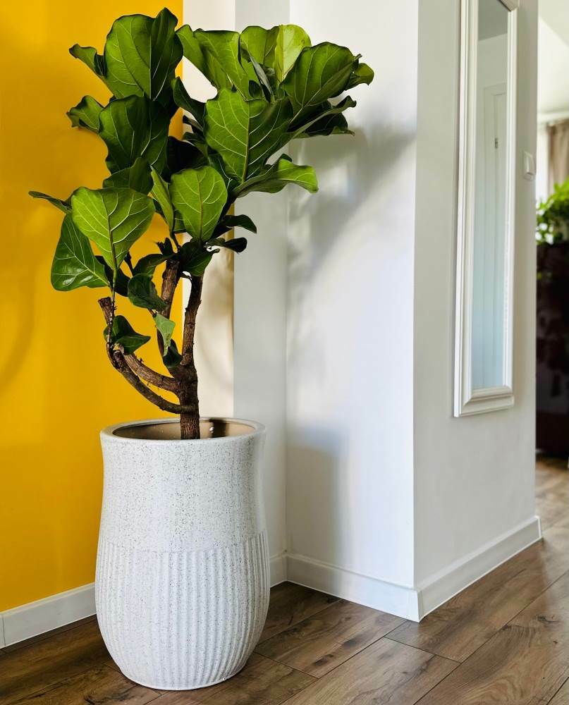 - Design z pionowymi paskami i gładką górą → Tworzy estetyczny kontrast, nadający donicy unikalny, ręcznie wykonany wygląd.