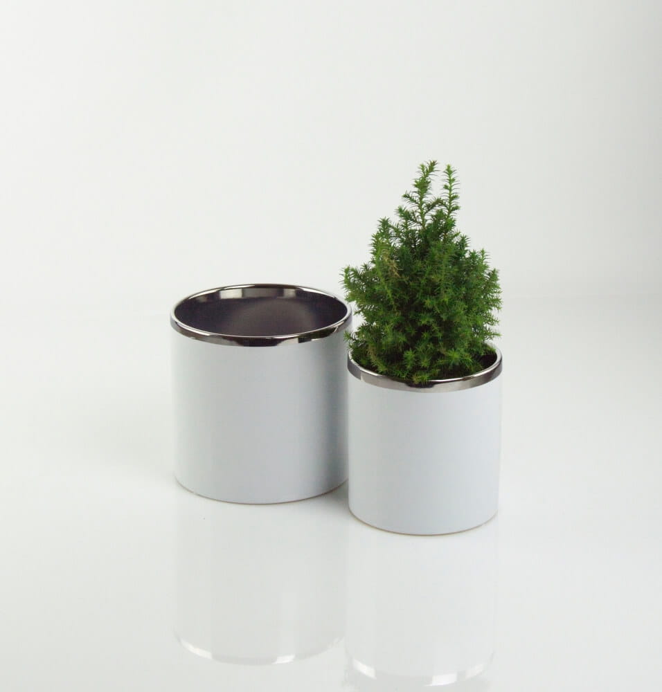 To cylindryczna donica z ceramiki, której lustrzano-srebrne wykończenie dodaje wnętrzu odrobiny luksusu. Dzięki klasycznemu kształtowi i dwukolorowej kolorystyce łatwo wpasuje się w różne aranżacje, a wykonanie z cienkościennej, szkliwionej ceramiki gwarantuje jej elegancki wygląd.