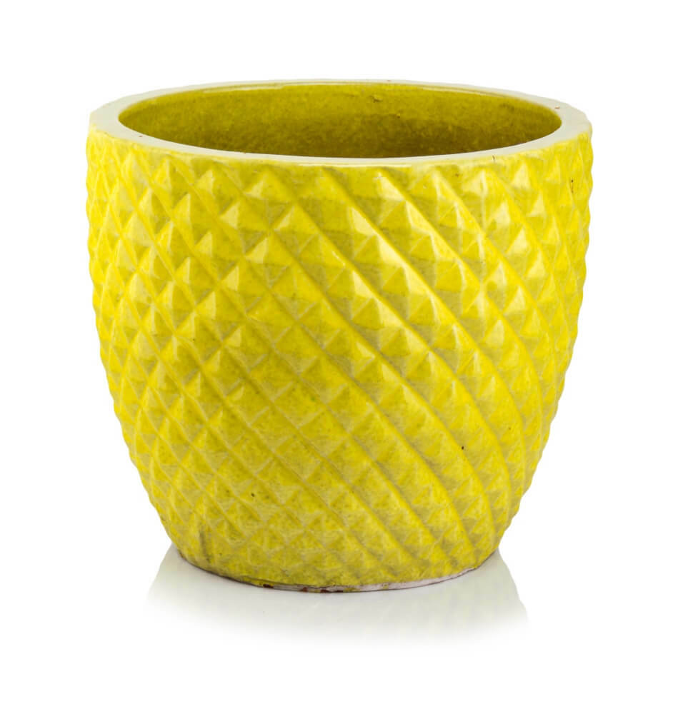 Okrągła, żółta donica ręcznie wykonana z ceramiki pokrytej błyszczącym szkliwem. Jej mrozoodporność i wbudowany otwór odpływowy sprawiają, że doskonale sprawdzi się zarówno w ogrodzie, na tarasie, jak i we wnętrzach, gdzie doda energii dzięki żywemu kolorowi.