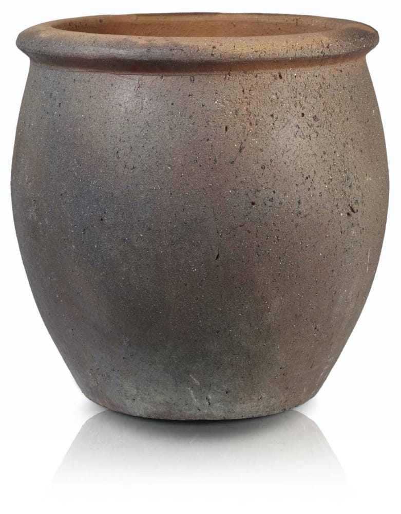 To bardzo duża, okrągła donica wykonana z ciemnobrązowej kamionki, która dzięki technologii wypalania w temperaturze powyżej 1100°C jest w pełni mrozoodporna. Jej masywna konstrukcja o pojemności 190 litrów zapewnia stabilność i mnóstwo miejsca na korzenie, doskonale sprawdzając się w ogrodach, na tarasach oraz w przestrzeniach publicznych przez cały rok.