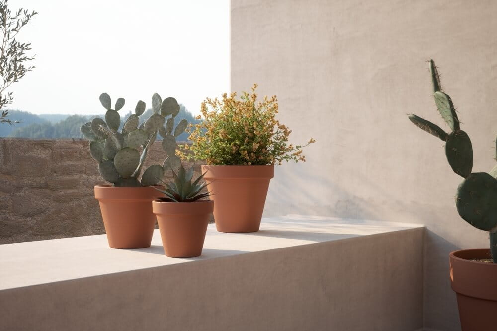 - Materiał – ceramika nieszkliwiona → Naturalna, porowata struktura terakoty pozwala korzeniom oddychać, co sprzyja zdrowemu wzrostowi roślin.