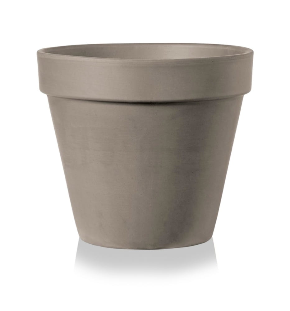 To okrągła donica z charakterystycznym rantem, wykonana z ręcznie formowanej, oryginalnej portugalskiej terakoty. Jej szary, matowy wygląd i naturalny materiał sprawiają, że doskonale wpisuje się zarówno w nowoczesne wnętrza, jak i ogrodowe aranżacje. To solidny wybór dla osób szukających dużej, klasycznej donicy o pojemności prawie 137 litrów.