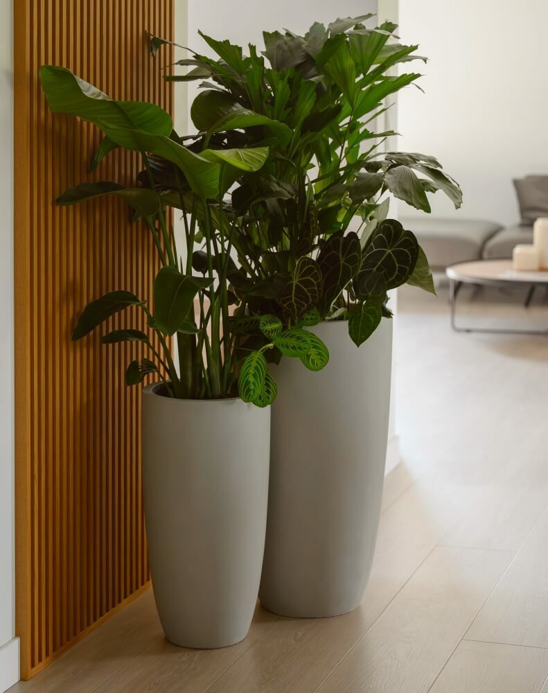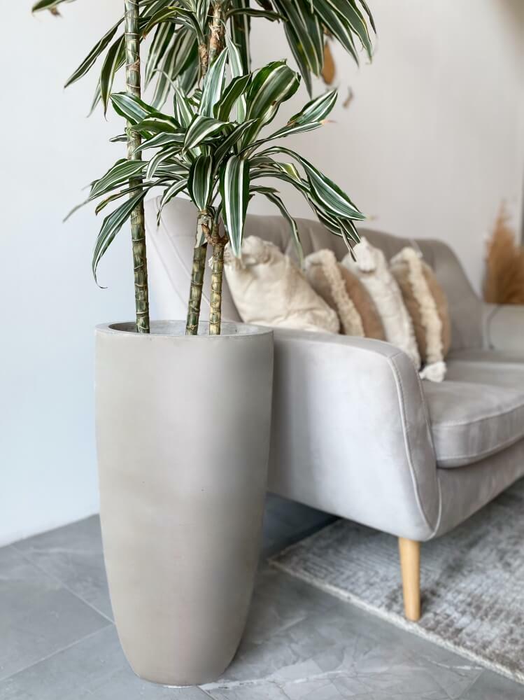 To wysoka, smukła donica o kształcie przypominającym cygaro, wykonana z wytrzymałego włókna ceramicznego. Jej nowoczesna, prosta forma i szare, betonowe wykończenie doskonale wpisują się w styl industrialny, zarówno w ogrodzie, na tarasie, jak i we wnętrzach. Dzięki optymalnej wadze jest na tyle lekka, by ją łatwo przestawić, a na tyle stabilna, by służyć w przestrzeni publicznej.