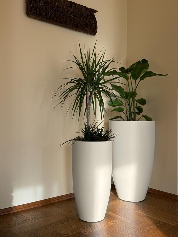 • Materiał – włókno szklane → Donica jest lekka (ważi 5,7 kg), co ułatwia jej przestawianie, a jednocześnie bardzo trwała i odporna na uszkodzenia oraz promieniowanie UV.