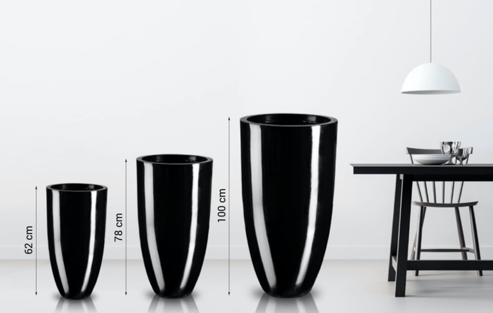 To wysoka donica ogrodowa o kształcie przypominającym cygaro, wyposażona fabrycznie w wewnętrzną półkę. Jej główną zaletą jest połączenie nowoczesnej, minimalistycznej formy z wyjątkową wytrzymałością materiału. To rozwiązanie dla osób, które szukają eleganckiego i trwałego pojemnika na rośliny do ogrodu, na taras lub do reprezentacyjnych przestrzeni zewnętrznych.