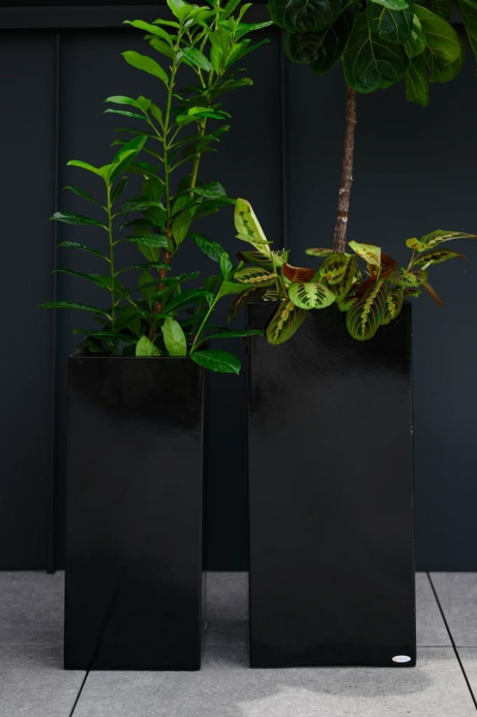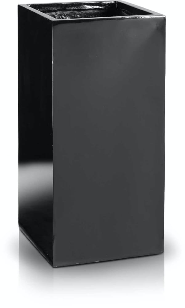Wysoka donica o kwadratowej podstawie, wykonana z wytrzymałego włókna szklanego. To model z wbudowaną wewnętrzną półką, który łączy nowoczesną, minimalistyczną formę z praktyczną funkcjonalnością. Świetnie sprawdzi się w ogrodzie, na tarasie lub balkonie, oferując solidność i elegancję w czarnym, błyszczącym kolorze.