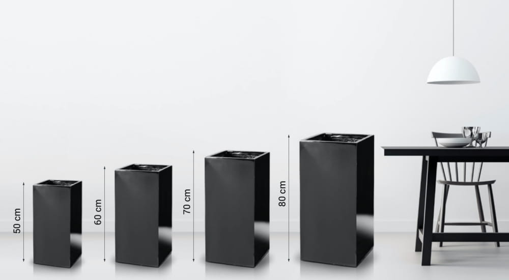 Wysoka donica ogrodowa o kwadratowej podstawie, wykonana z wytrzymałego włókna szklanego. To elegancki i nowoczesny wybór do ogrodu, tarasu lub przestrzeni miejskiej, który łączy w sobie lekkość, trwałość i prostą formę. Produkt polski, dostarczany z folią ogrodniczą i instrukcją nasadzenia.