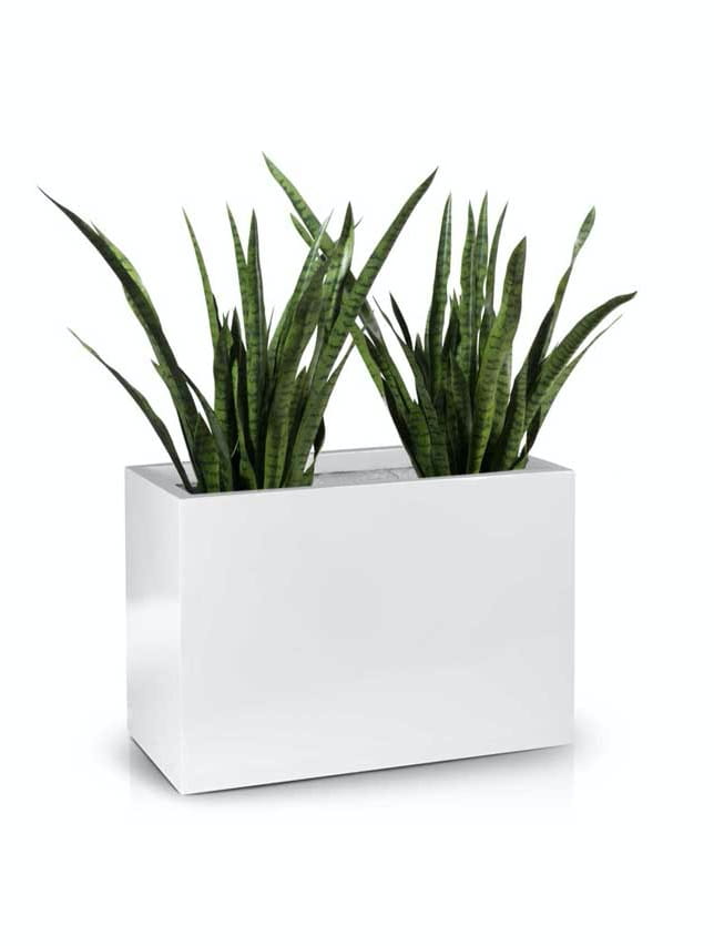 To duża, podłużna donica ogrodowa o prostokątnej podstawie, wykonana z wytrzymałego i eleganckiego włókna szklanego. Jej nowoczesny kształt i funkcjonalność sprawiają, że doskonale sprawdzi się jako praktyczny separator przestrzeni na tarasie, w ogrodzie lub w pomieszczeniach.