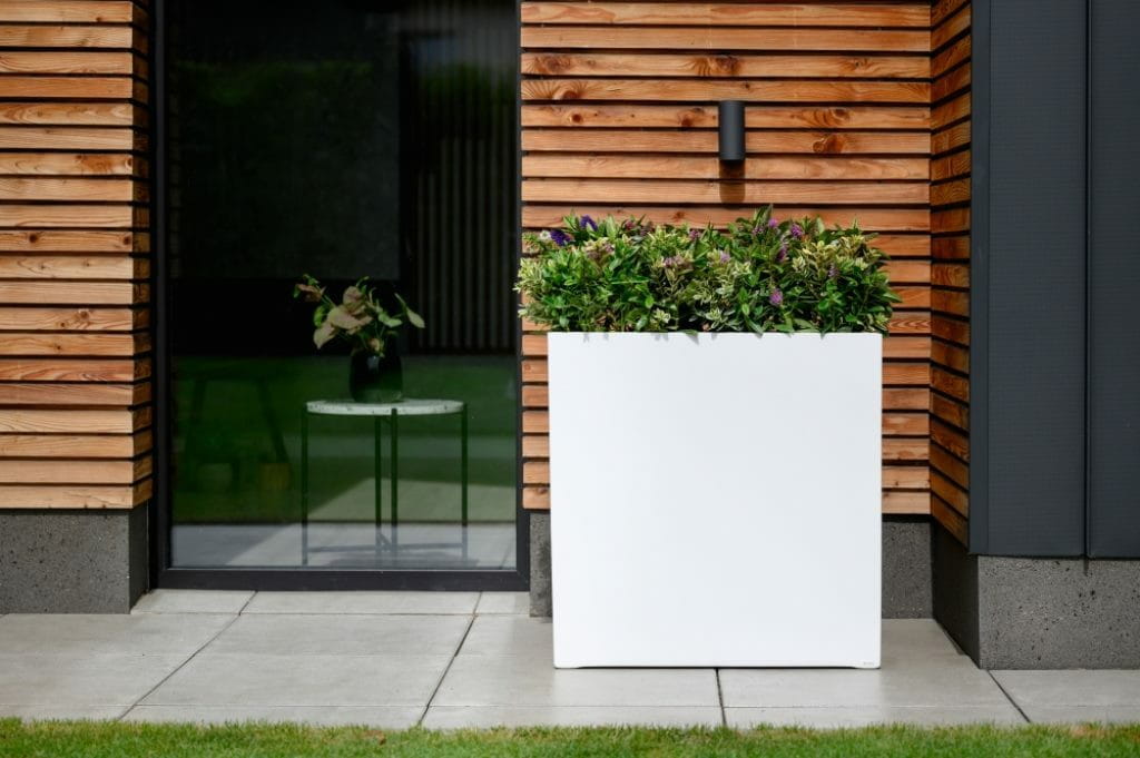 - Włókno szklane (fiberglass) → Materiał jest niezwykle trwały, odporny na uderzenia, promieniowanie UV i korozję. Jego lekkość (ok. 8,2 kg) ułatwia przestawianie donicy nawet po posadzeniu roślin.