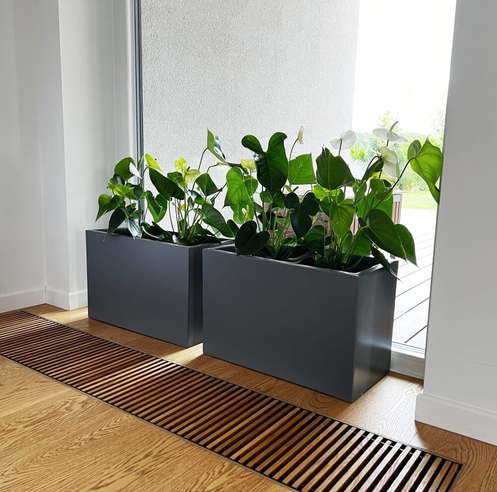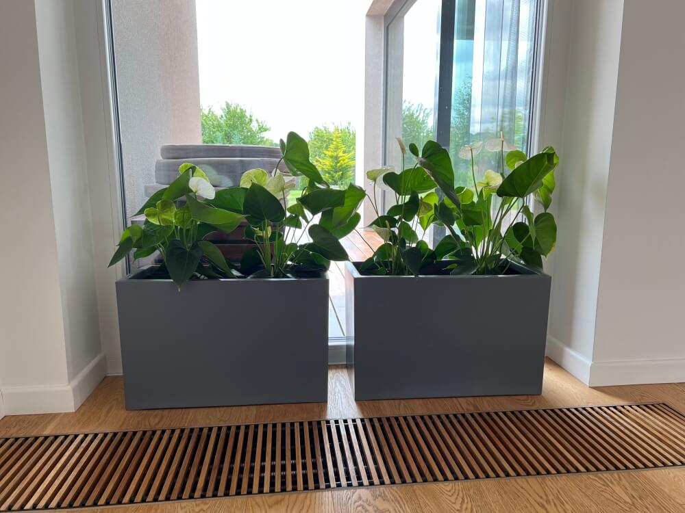 - Włókno szklane → materiał bardzo wytrzymały, całkowicie odporny na promienie UV i korozję, dzięki czemu donica długo zachowuje swój wygląd.