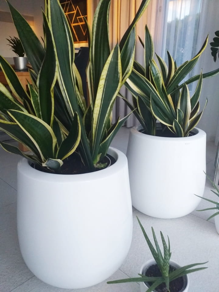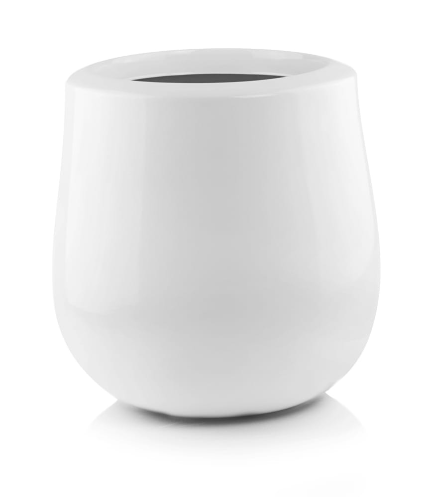 Pękata, duża donica o kształcie delikatnie zwężanym ku górze, która dzięki białemu, błyszczącemu wykończeniu prezentuje się nowocześnie i elegancko. Wykonana z wytrzymałego włókna szklanego, jest lekka, a przy tym odporna na kaprysy pogody, co czyni ją praktycznym wyborem do ogrodu, na taras lub balkon.