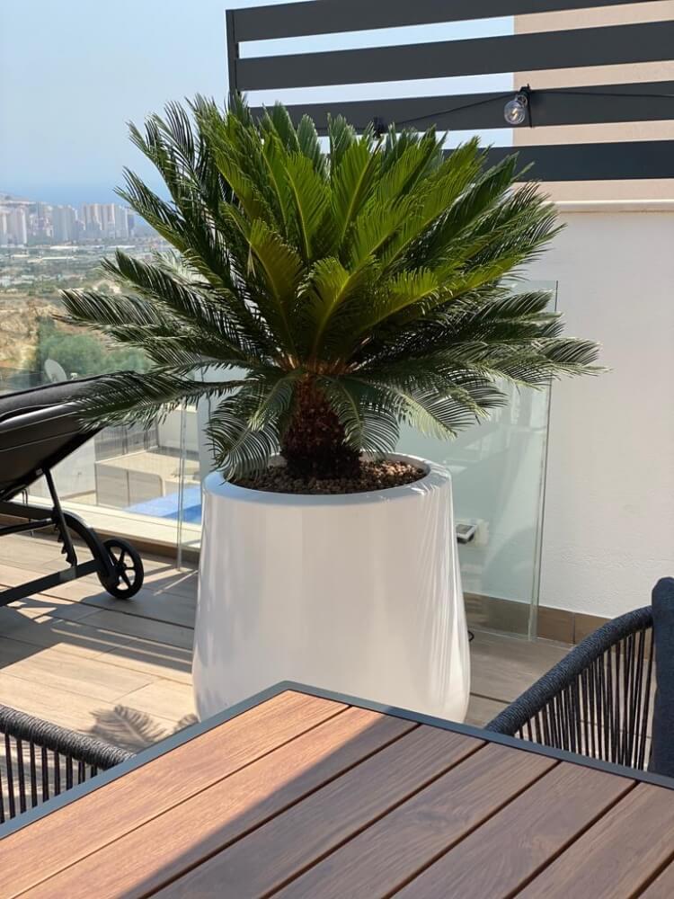 - Włókno szklane (fiberglass) → Materiał niezwykle wytrzymały, lekki (waga donicy to 5,6 kg) i całkowicie odporny na korozję oraz blaknięcie pod wpływem słońca.