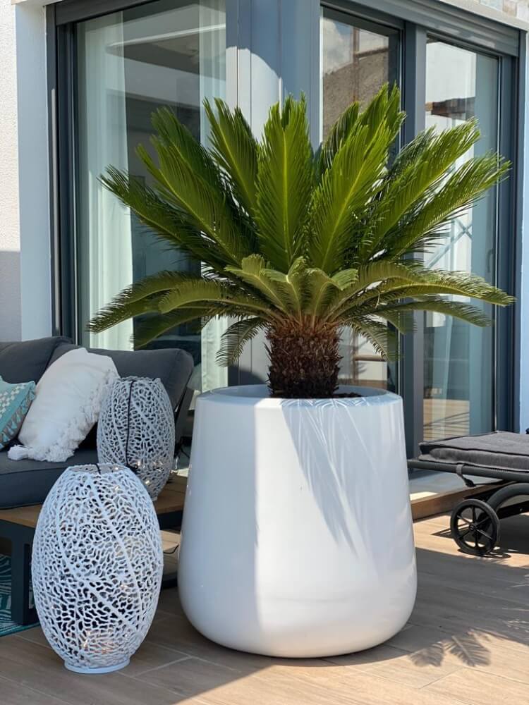 - Mrozoodporność → Donica jest w 100% odporna na mróz i może stać na zewnątrz przez cały rok. Donica jest mrozoodporna wyłącznie w przypadku wykonania otworu odpływowego.