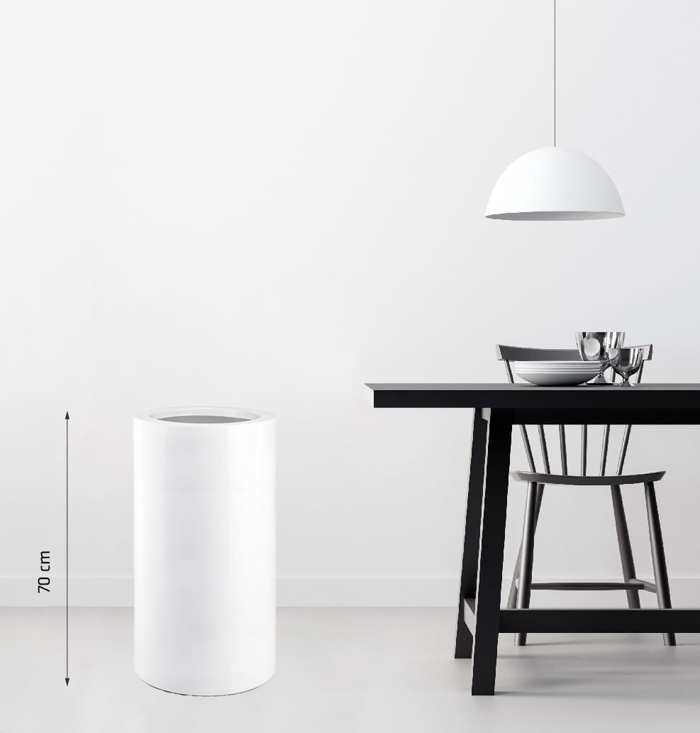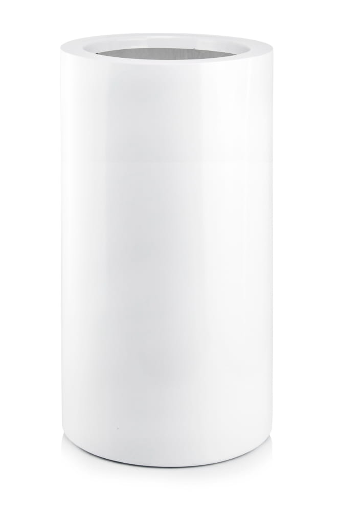 To duża, cylindryczna donica ogrodowa, która łączy w sobie nowoczesną formę z praktyczną trwałością. Wykonana z odpornego włókna szklanego w czystym, białym kolorze, doskonale sprawdzi się jako elegancka oprawa dla roślin na tarasie, w ogrodzie czy reprezentacyjnym wejściu. Model wyposażony jest w wewnętrzną półkę, która ułatwia prawidłowy drenaż.
