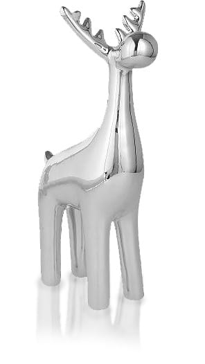 To srebrna figurka przedstawiająca renifera, która doskonale sprawdzi się jako dekoracja świąteczna. Model wykonany z cienkościennej ceramiki i pokryty błyszczącym szkliwem, dzięki czemu prezentuje się elegancko i subtelnie odbija światło. To prosta, ale efektowna ozdoba, która wprowadzi do Twojego domu klimat Bożego Narodzenia.