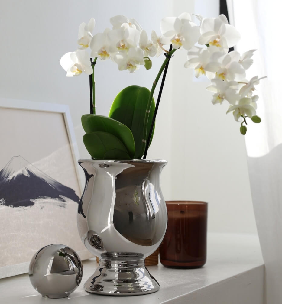 - Lustrzano-srebrne wykończenie → Powierzchnia pokryta galwanicznie srebrem doskonale odbija otoczenie, dodając przestrzeni głębi i efektownego blasku.