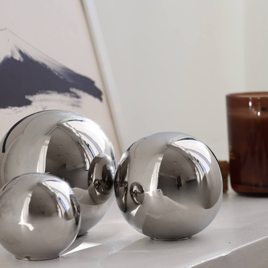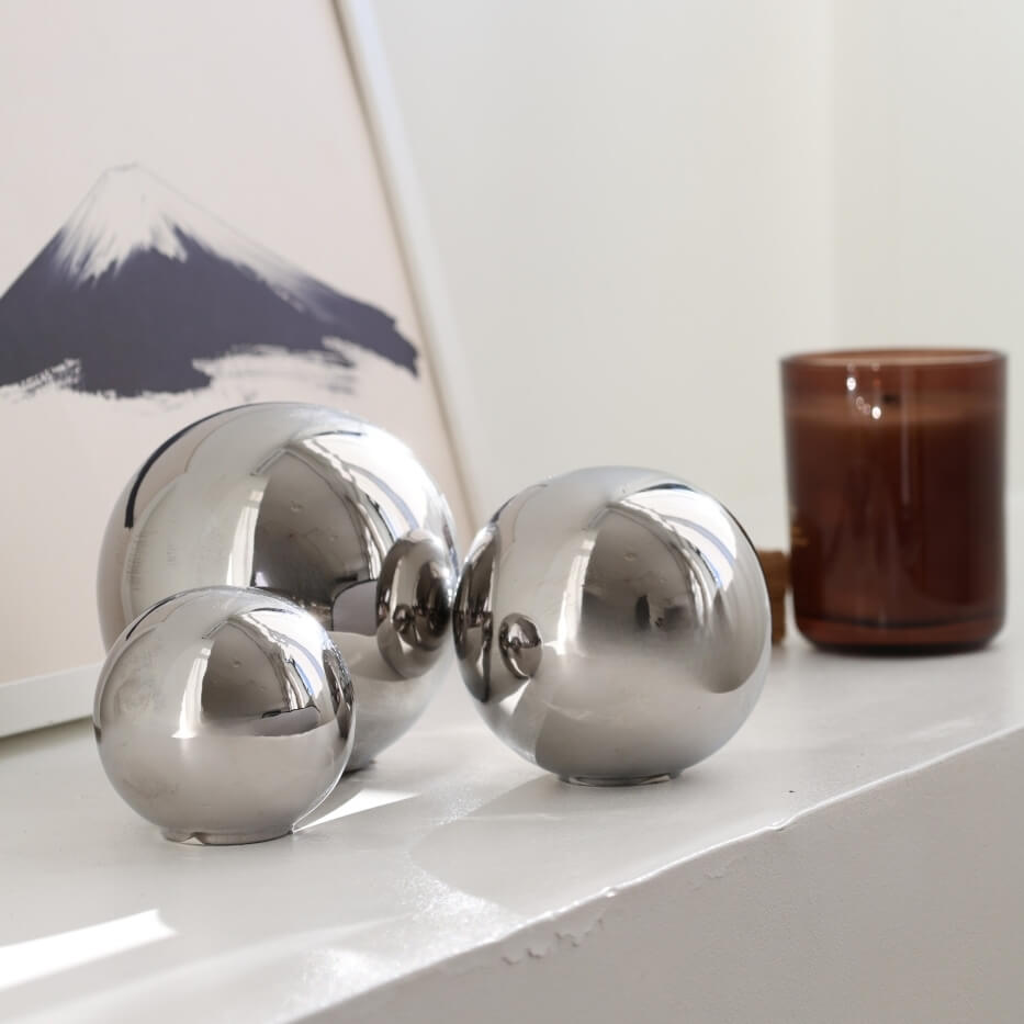 To elegancka kula dekoracyjna z kolekcji Moon, która wprowadza do wnętrza metaliczny, lustrzany akcent w stylu glamour. Wykonana z cienkościennej ceramiki pokrytej srebrnym szkliwem, stanowi uniwersalny element dekoracyjny dla osób ceniących estetykę i nowoczesny design.