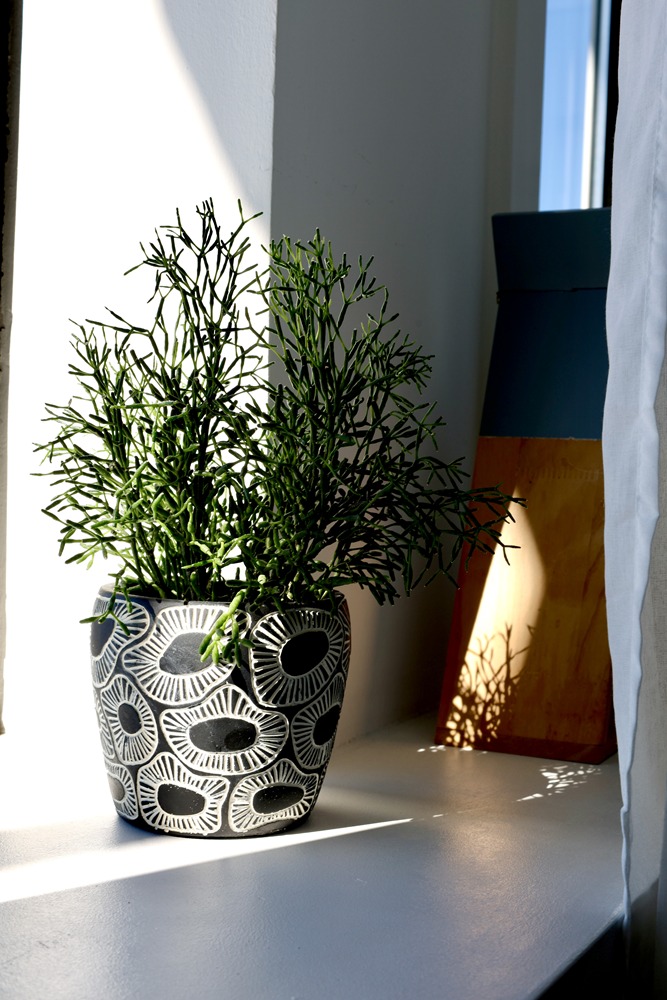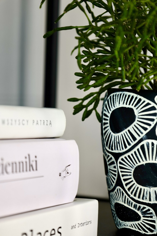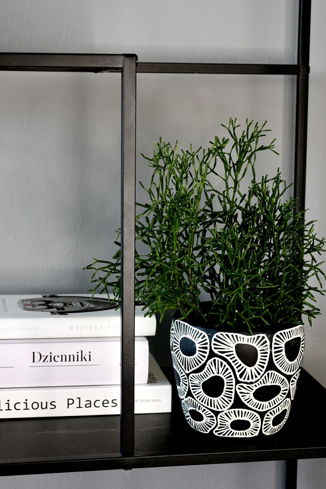 Ceramiczna osłonka doniczkowa o wyjątkowym, zaskakującym wzornictwie. Zarówno kolorystyka czarno-biała, będąca ze sobą w silnym kontraście, jak i design który jest mocny, wyrazisty przywołujący etniczne skojarzenia, wszystko razem jest nieoczywiste i nietypowe. Doniczka dla miłośników silnych akcentów dekoracyjnych, mających swój niepowtarzalny styl wpływający na charakter wnętrza.