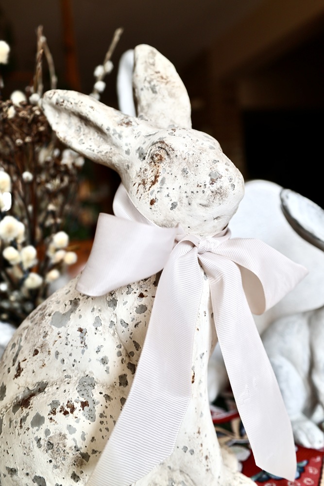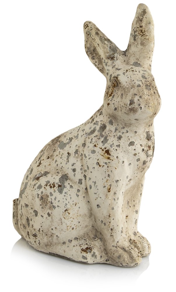 Stylizowana figura zająca jest nieodłącznym symbolem związanym ze świętami Wielkiej Nocy, dodającym wiele uroku i potęgującym świąteczną atmosferę. Najstarsze źródła łączące zajączka ze świętami Wielkanocnymi pochodzą z XVII w., wtedy zaczął uczestniczyć w aranżacjach świątecznych. Symbolicznie zające odnalazły się w wielu odsłonach jako zwiastuny wiosny i nowego życia, zając występował również jako stworzenie przynoszące pisanki i upominki. Zajączki symbolizują również czujność i niewinność oraz radość świąteczną i nadzieję. Figury zajęcy można z powodzeniem aranżować w różnych wariantach jako samodzielne ozdoby, można tworzyć grupy zajęcy, jak również doskonale wyglądają w kompozycjach z innymi elementami dekoracyjnymi np. z zielenią roślin.  Figurki zajęcy stanowią niezmiennie wdzięczny i cenny element w wielu świątecznych aranżacjach. Wykończenie stylizowane na beton architektoniczny dodaje figurce naturalności i szlachetnej surowości, nie zabierając jednocześnie bijącego od niej ciepła i czaru.