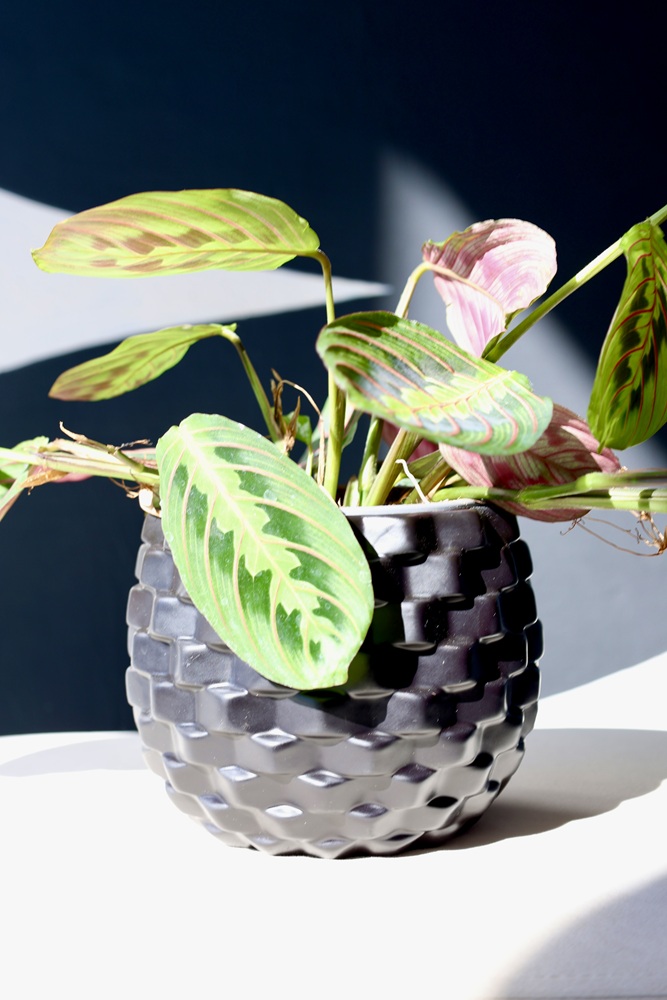 Ceramiczna osłonka doniczkowa zwracająca uwagę graficznym tworzącym wypukłą mozaikę wzorem i płynnie współgrającą z nim stonowaną czarno-grafitową kolorystyką. Doniczka, w której sztuka łączenia prostoty z wyrafinowaną estetyką budzi podziw i cieszy oko. Idealny dodatek do nowoczesnych, minimalistycznych wnętrz, wpisujący się we współczesne trendy.