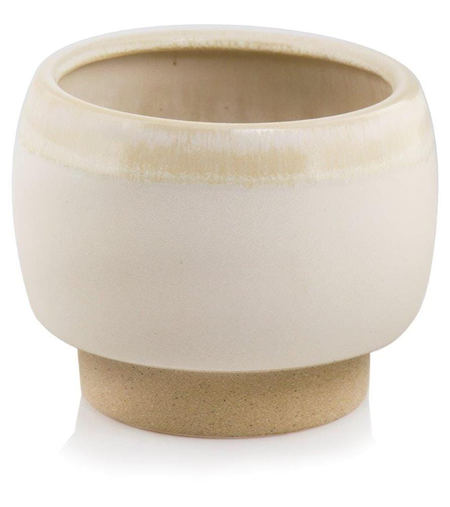 Ceramiczna osłonka doniczkowa w komplecie z drewnianym stojakiem. Wysokiej jakości ceramika w pięknym beżowo-kremowym kolorze. Bardzo ciekawy kształt, mocno zwężający się w dole, idealnie dopasowany do stojaka. Kwietnik stanowi samodzielny i ciekawy wizualnie projekt, pasując stylistycznie do wielu wnętrz zarówno nowoczesnych jak i bardziej tradycyjnych. Ceramika z drewnem zawsze idealnie się dopełnia tworząc elegancką, wysmakowaną, niecodzienną dekorację.