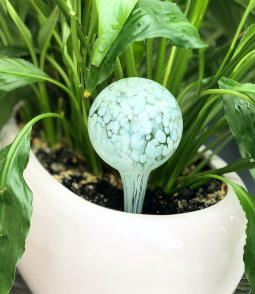 Szklana kula nawadniająca to proste i eleganckie rozwiązanie, które zapewnia roślinom stały dostęp do wody. Działa na zasadzie samoczynnego uwalniania wilgoci, dzięki czemu pomaga utrzymać optymalną wilgotność podłoża. To świetny sposób na pielęgnację kwiatów doniczkowych, zwłaszcza gdy wyjeżdżasz na kilka dni lub po prostu chcesz uniknąć częstego podlewania.