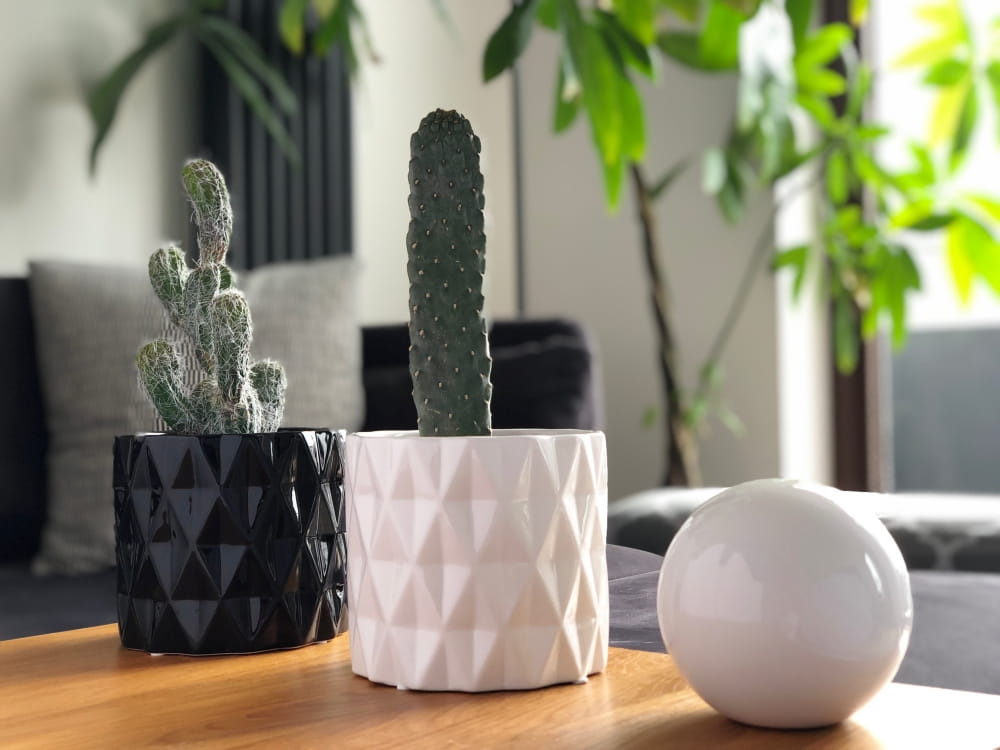 Ta osłonka doskonale sprawdzi się jako elegancka oprawa dla małych sukulentów, kaktusów czy zielistek. Jej cylindryczny kształt i geometryczny wzór świetnie komponują się z minimalistycznymi i nowoczesnymi stylami wnętrz. Pamiętaj, że jest to osłonka, więc roślinę sadzimy w standardowej, plastikowej doniczce, którą następnie umieszczamy w środku – to ułatwia podlewanie i chroni ceramikę przed bezpośrednim kontaktem z wilgocią.