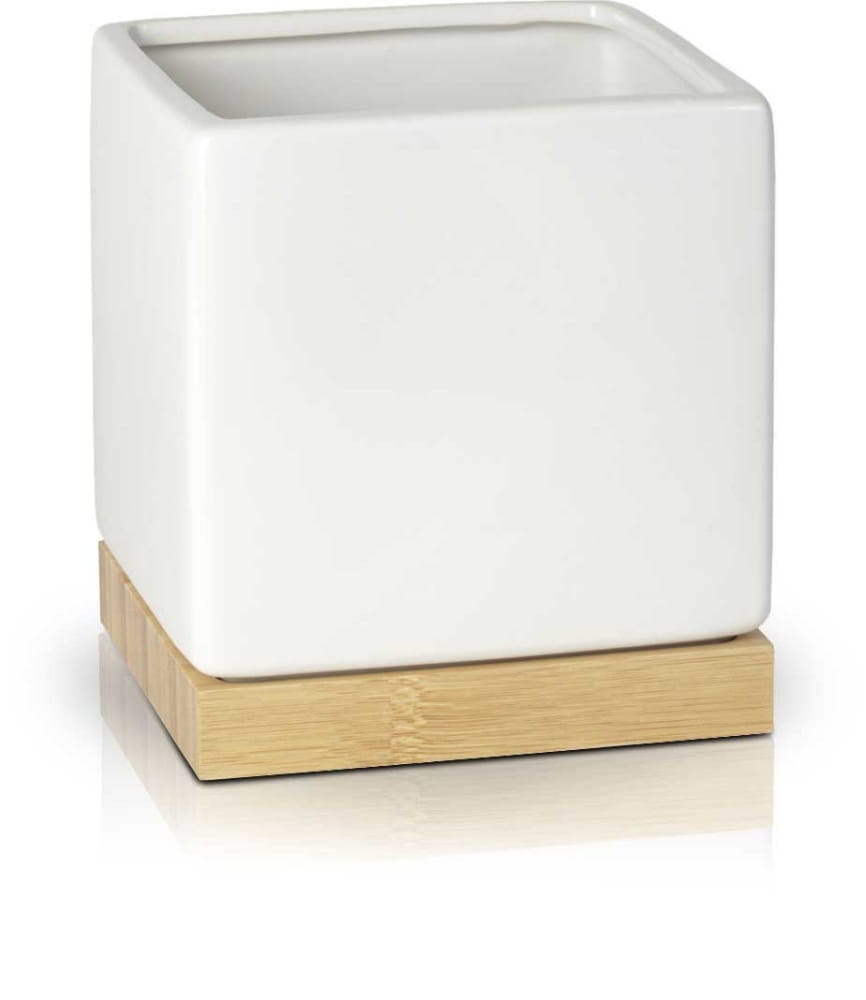 Kwadratowa osłonka ceramiczna na dekoracyjnej podstawie z bambusa to połączenie, które dodaje charakteru każdemu wnętrzu. Subtelny biały połysk ceramiki znakomicie komponuje się z naturalną strukturą drewna, tworząc dodatek pasujący zarówno do stylu skandynawskiego, rustykalnego, jak i boho.