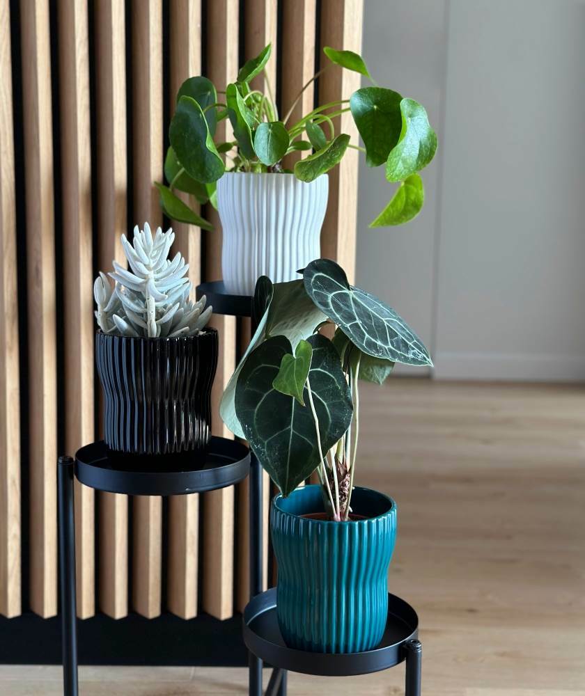 • Brak odpływu → Model nie posiada otworu odpływowego, dlatego zaleca się używanie go jako osłonki na doniczkę produkcyjną, co ułatwia kontrolę nadwilgocią i chroni meble.