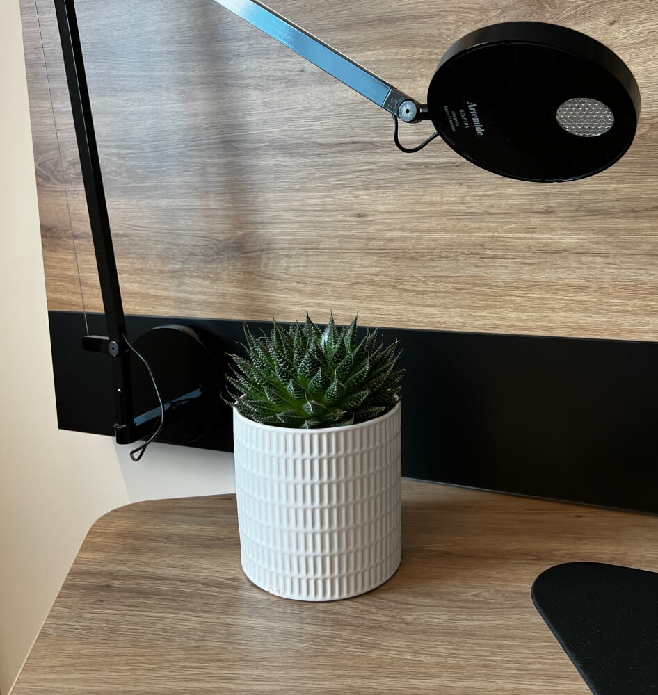 - Kształt cylindra → Prosty, ponadczasowy design, który nie dominuje w przestrzeni i współgra z wieloma stylami wystroju.