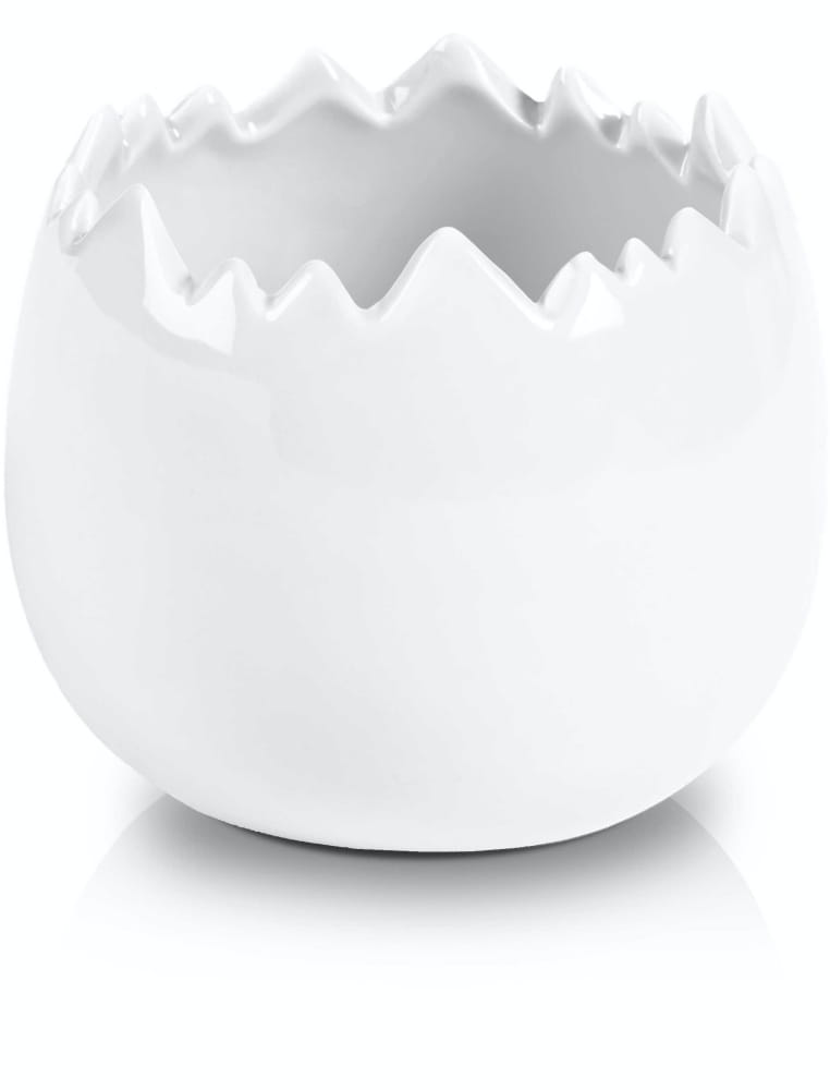 To ceramiczna osłonka o unikalnym kształcie, który przypomina potłuczoną skorupkę jajka. Jej błyszcząca, biała powierzchnia dodaje elegancji i świetnie komponuje się z zielenią roślin. Dzięki niewielkiej wadze (0,4 kg) łatwo ją przestawiać i dopasować do różnych aranżacji.