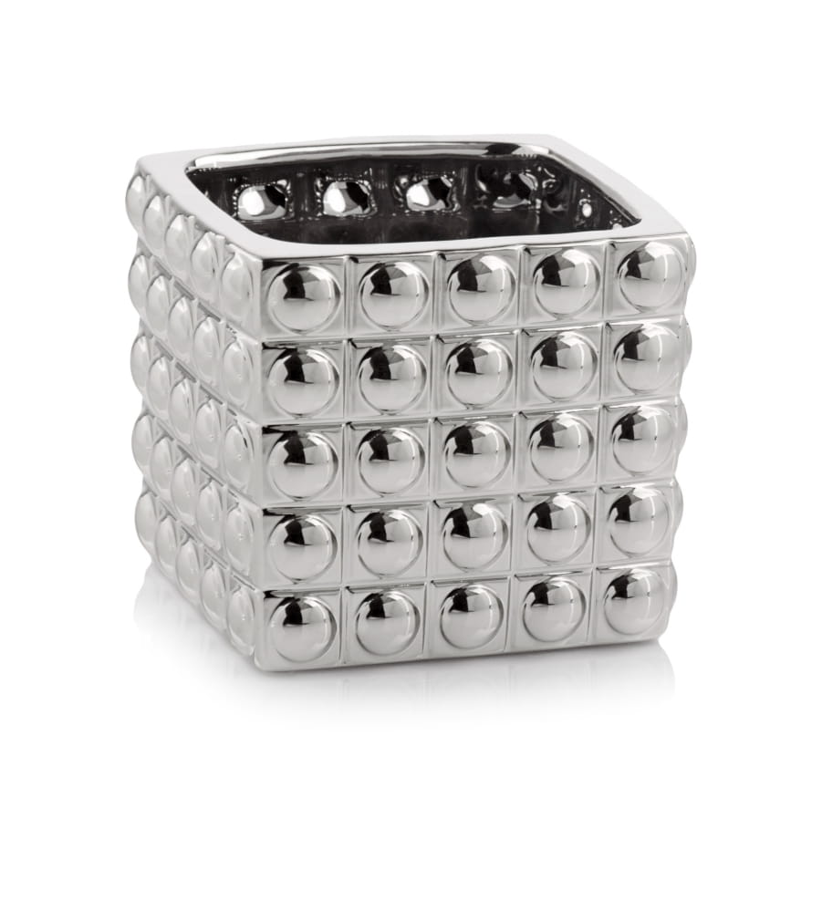 Kwadratowa osłonka z kolekcji Moon, która dzięki lustrzano-srebrnemu wykończeniu wprowadza do wnętrza efektowny, metaliczny akcent. Jej powierzchnia, stworzona w procesie galwanizacji, odbija otoczenie jak gładkie zwierciadło. To wybór dla osób ceniących designerskie detale i styl glamour w aranżacji.