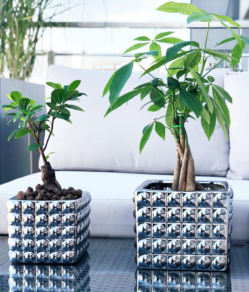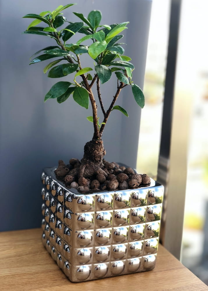 Osłonka Moon doskonale spełnia rolę eleganckiej oprawy dla roślin doniczkowych, ale sprawdzi się również jako ozdobny pojemnik na klucze, przybory czy jako baza dla florystycznych kompozycji. Ponieważ nie ma wbudowanego odpływu, warto umieścić w niej roślinę w doniczce z otworem, co zapobiegnie bezpośredniemu kontaktowi ceramiki z wodą i ułatwi pielęgnację. Jej lustrzana powierzchnia będzie wymagała okresowego delikatnego czyszczenia, aby zachować nienaganny, błyszczący wygląd. Uniwersalny srebrny kolor i nowoczesny kształt pozwalają wpasować ją zarówno do stylu glamour, jak i do nowoczesnych, minimalistycznych wnętrz.
