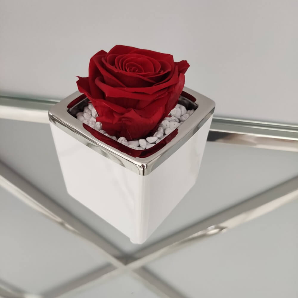 To mała, kwadratowa osłonka, która dzięki lustrzanemu wykończeniu w stylu glamour dodaje przestrzeni ekskluzywnego charakteru. Jej kompaktowe rozmiary (9x9 cm) sprawiają, że jest doskonałym wyborem do wyeksponowania pojedynczych sukulentów, małych kaktusów lub jako elegancki pojemnik na biurko.