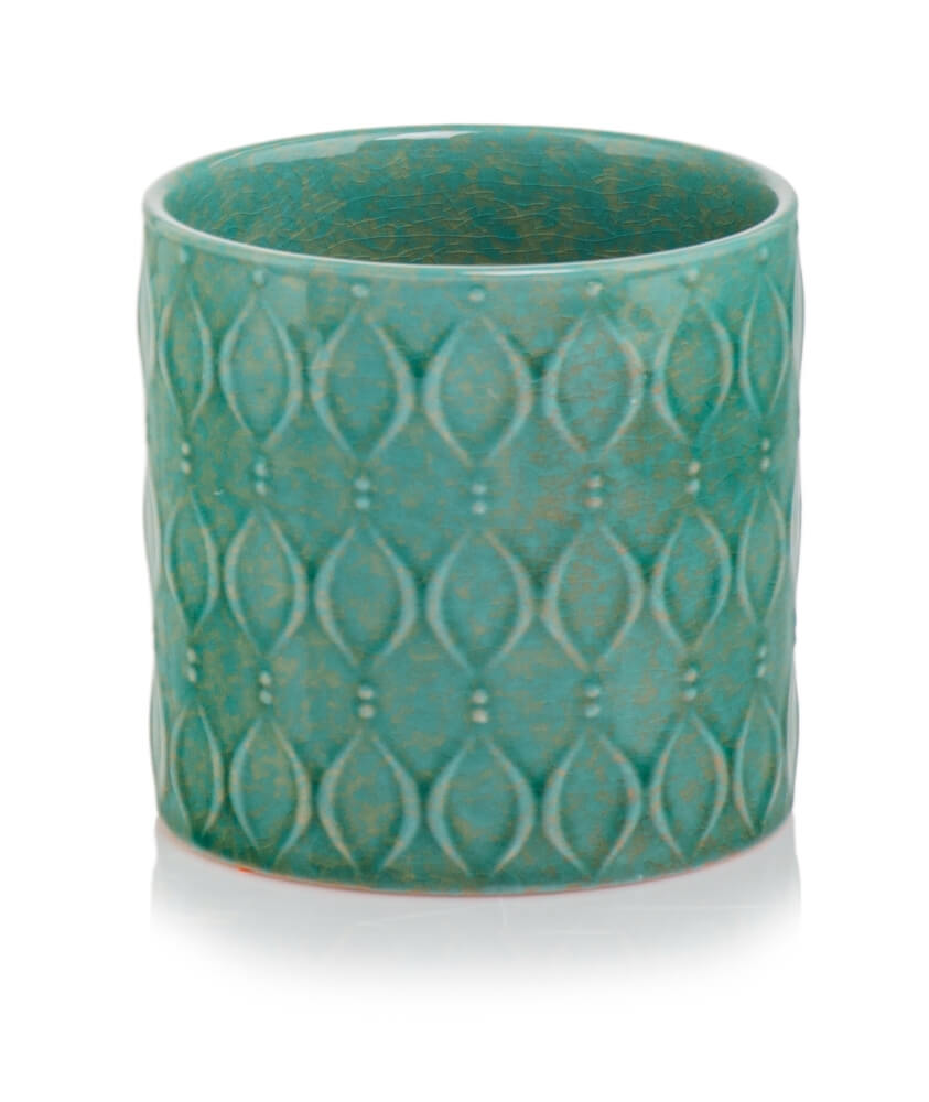 Klasyczna cylindryczna osłonka wykonana ręcznie z ceramiki, która wyróżnia się turkusową, w pełni szkliwioną powierzchnią. Jej charakter nadaje celowy efekt crackle z licznymi pęknięciami szkliwa, niedolaniami i nierównościami, co sprawia, że każdy egzemplarz jest unikalnym rękodziełem. To propozycja dla osób szukających ceramiki z duszą, która wniesie do wnętrza śródziemnomorski klimat i szlachetne niedoskonałości.