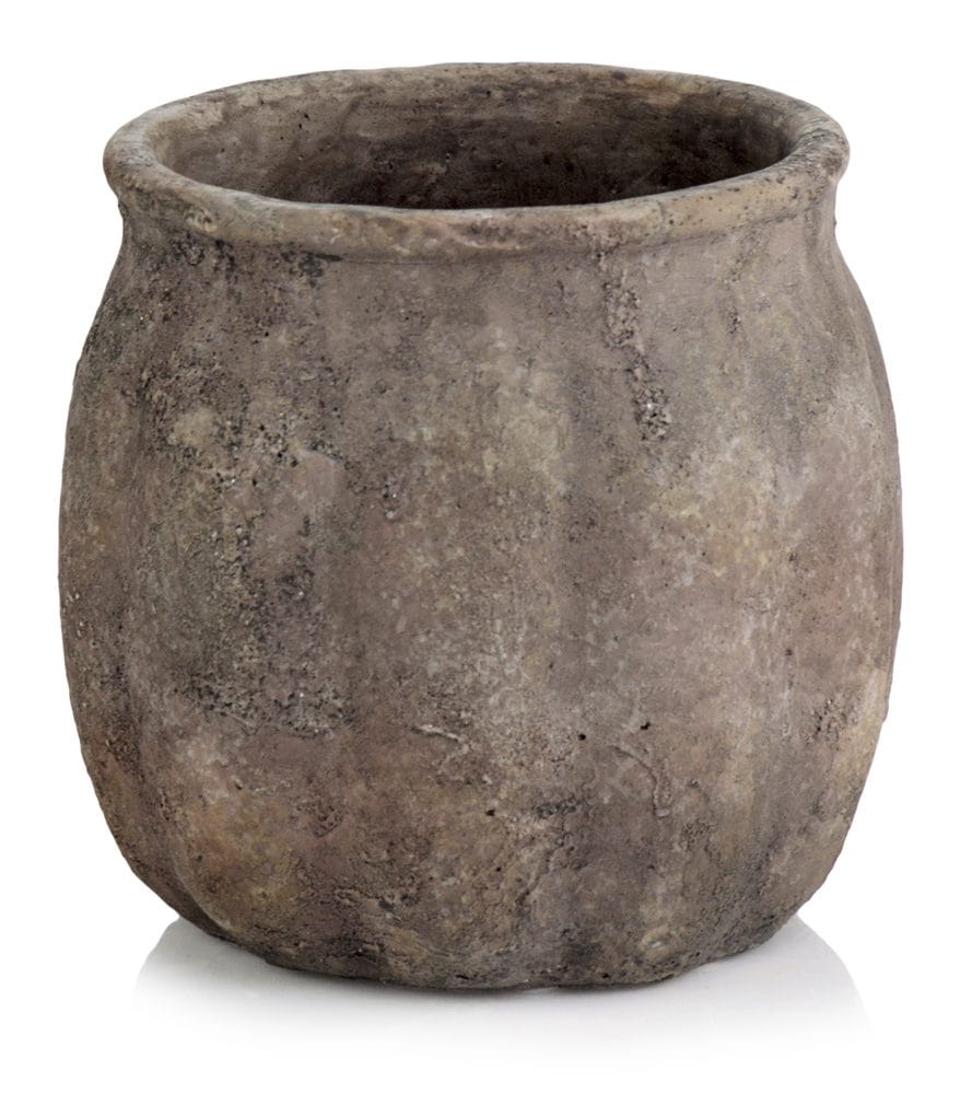 Ceramiczna osłonka doniczkowa o pięknym „garnuszkowym” kształcie, posiadająca, delikatne pionowe ryflowania dodające całości szlachetności i elegancji. Doniczka o naturalnym, postarzanym wykończeniu powoduje, że czuje się w niej antyczny charakter. Kolorystyka w odcieniach ziemi tworzy harmonijny związek z roślinnością. Do wykorzystania w wielu aranżacjach, w których ceni się terakotową strukturę i subtelne odcienie brązu i szarości.