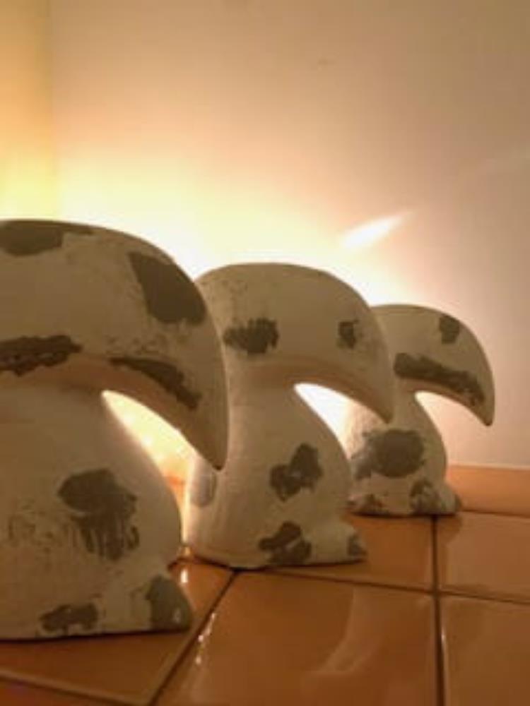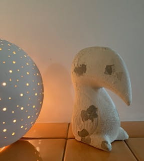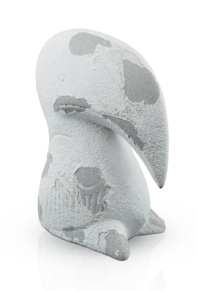 Lekko karykaturalna, przerysowana, poprzez ogromny dziób, figurka tukana. Kolorem bazowym jest szary, ale jest on zdominowany przez białą powłokę z glinki. Tukan z pewnością znajdzie się w centrum uwagi i doda uroku każdej aranżacji.