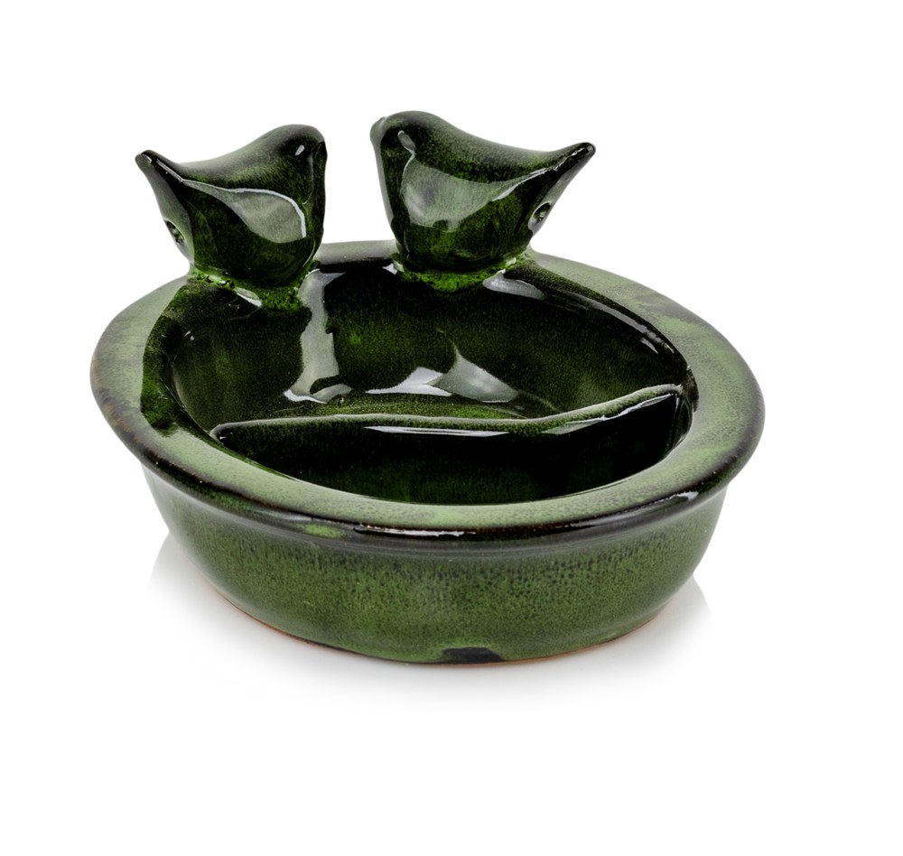 Wyjątkowa dekoracja ogrodowa wykonana z ceramiki, pełniąca funkcję poidełka dla naszych ptasich przyjaciół. Dzięki niemu nie tylko zaspokoimy ptasie pragnienie, ale będziemy mogli obserwować ptasie harce i swawole. Po nasypaniu mieszanki ziaren może służyć również jako tymczasowy karmnik. Poidełko wykonane z masywnej ceramiki, solidnie szkliwionej, wytrzymałej i odpornej na czynniki atmosferyczne. W centralnej części naczynia znajduje się przegródka umożliwiająca łączenie poidełka z karmikiem. Całość rozweselają urocze figurki ptaszków umiejscowionych przy górnej krawędzi. Piękny dodatek dekoracyjny do każdego ogrodu i wymarzone miejsce spotkań okolicznych ptaków.