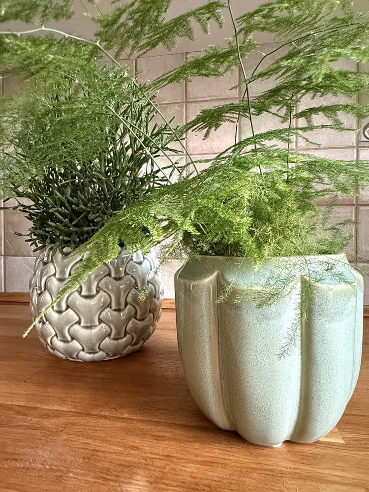 Ceramiczna osłonka doniczkowa przyciągająca wzrok świeżym, miętowym kolorem, oryginalną, nietypową stylistyką. Wyrafinowanie i finezja to określenia w pełni oddające charakter tej doniczki. Z zielenią roślin tworzy harmonijną całość, dodając wyjątkowego uroku i ponadczasowej elegancji każdemu wnętrzu.